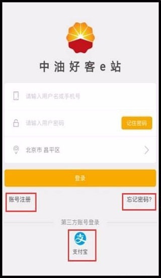 1、打开中油好客e站的登录界面,点击【账号注册】按钮进入注册页面。