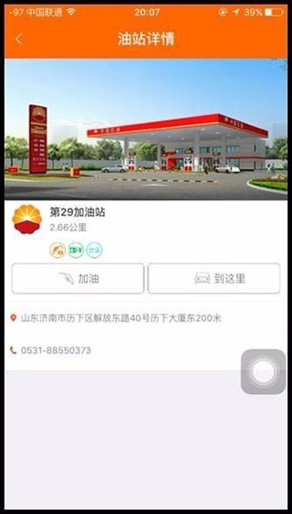 点击加油站详情,可以查看该加油站的服务信息和联系方式等。
