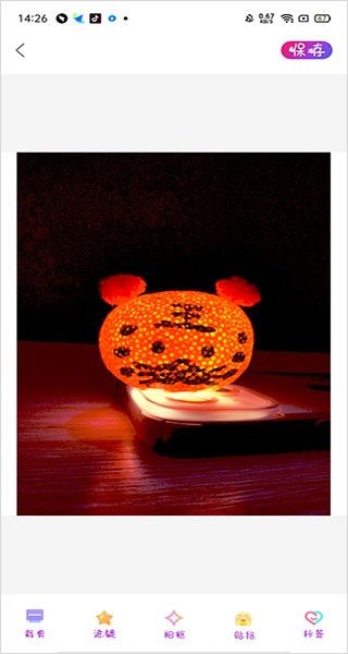 2、添加图片后可以进行编辑,裁剪、添加滤镜、相框、贴纸、标签等,编辑完成后点击保存即可。