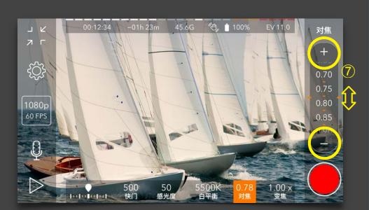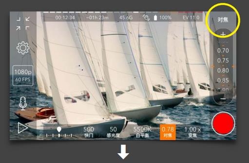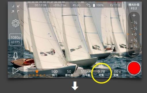 b、右上角显示正在调整的是对焦。