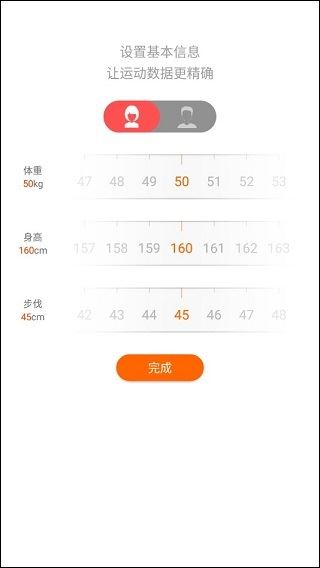2、登录后,选择性别、体重、身高以及步伐等信息。