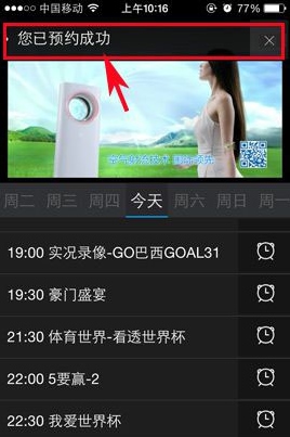2)进入后,视频播放窗口会显示当前直播内容。根据节目单选择你想看的节目,点击即可。如果预约成功,界面顶部会显示“你已预约成功”的提示。
