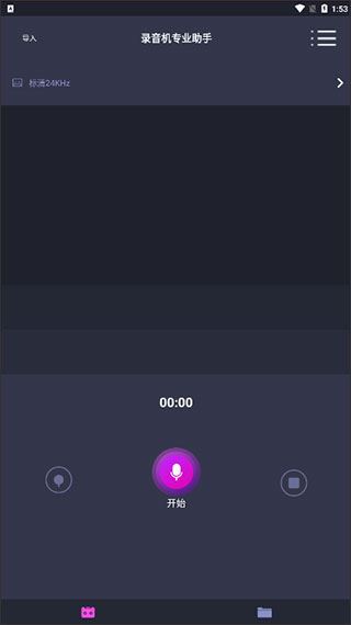 1、打开录音机专业助手,进入主界面后,无需登录即可直接使用。