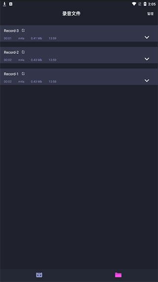 3、点击右下角的文件夹,查看已录制的音频文件。