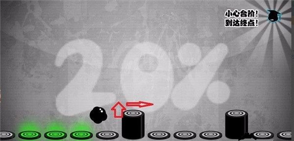 想要获得更高分数,必须掌握精准的跳跃节奏。玩家可以点击屏幕使小墨点跳跃两格,而如果不操作,小墨点会逐步跳跃。游戏的跳跃节奏是根据背景音乐来设定的,只要跟上节奏,小墨点就能快速前进。